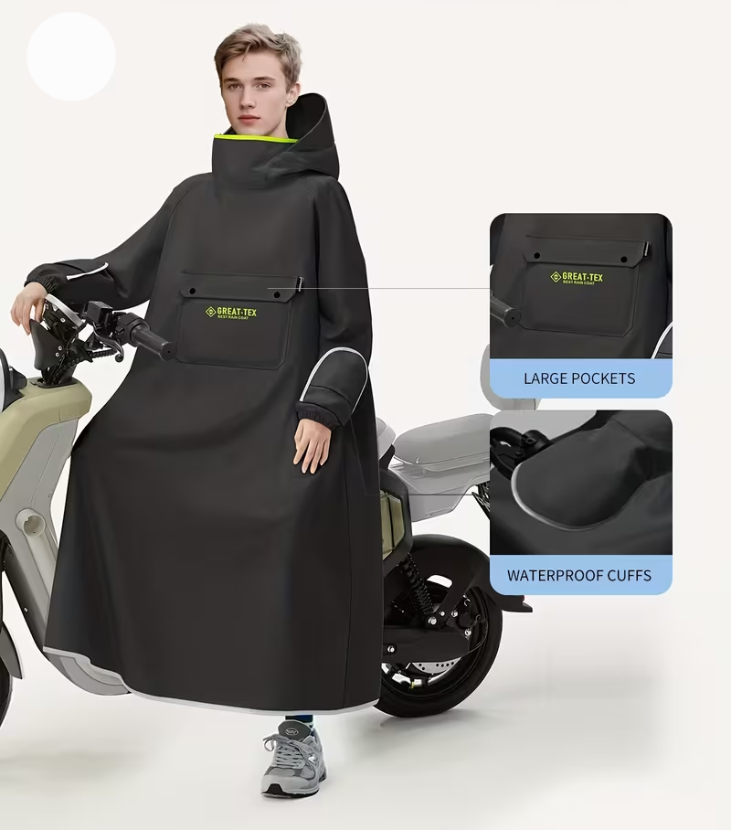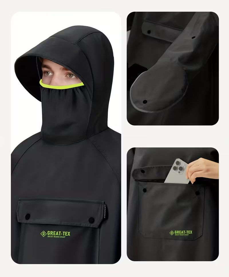 Capa de chuva unissex, ideal para homens e mulhere. Oferece proteção eficaz com capuz, mantendo o usuário seco e estiloso durante uma chuva. Mantém seco em condições de chuva intensa. Leve e fácil de transportar, o design da Capa de chuva garante cobertura total, ideal para atividades ao ar livre.